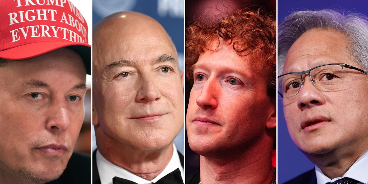 Elon Musk, Mark Zuckerberg, Jeff Bezos, Jensen Huang, and Michael Dell saw a combined $26 billion wiped off their net worths in one day, the Bloomberg Billionaires Index shows.