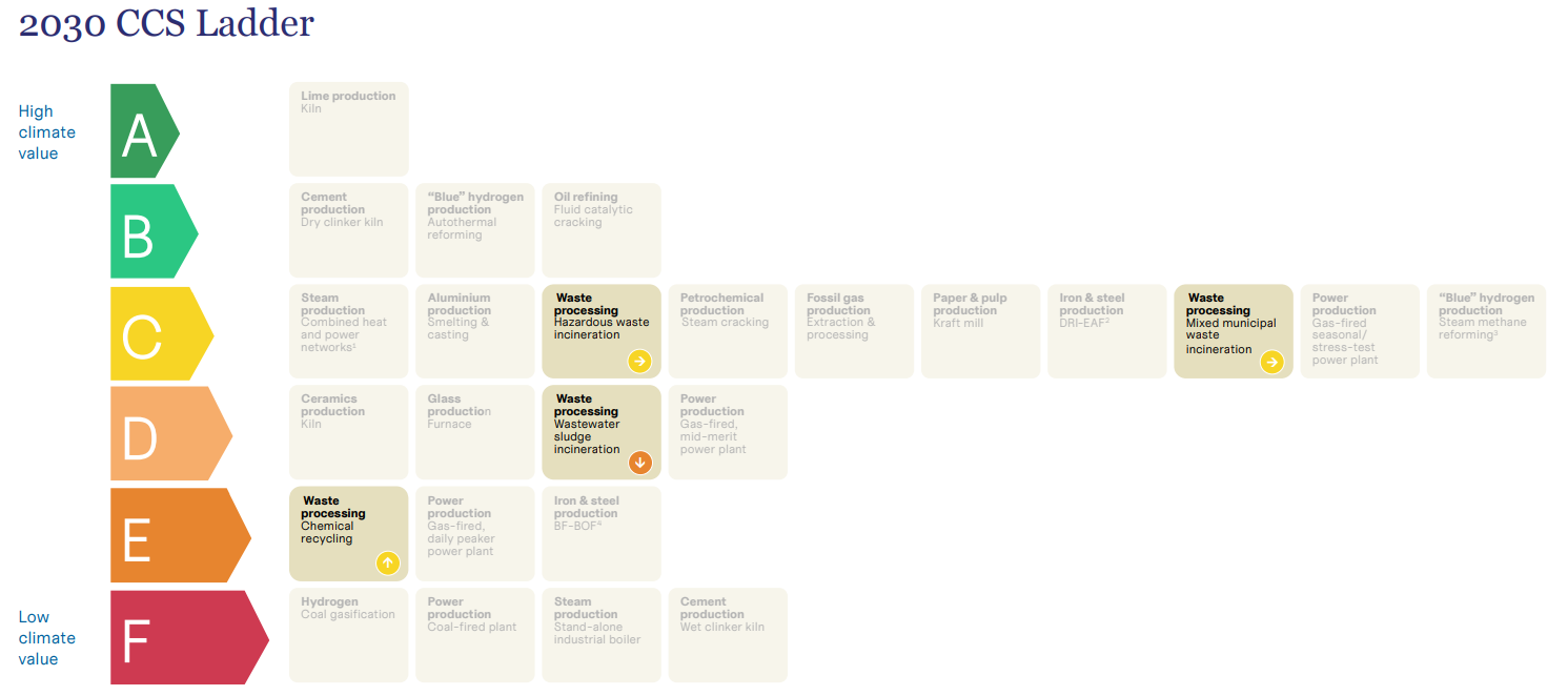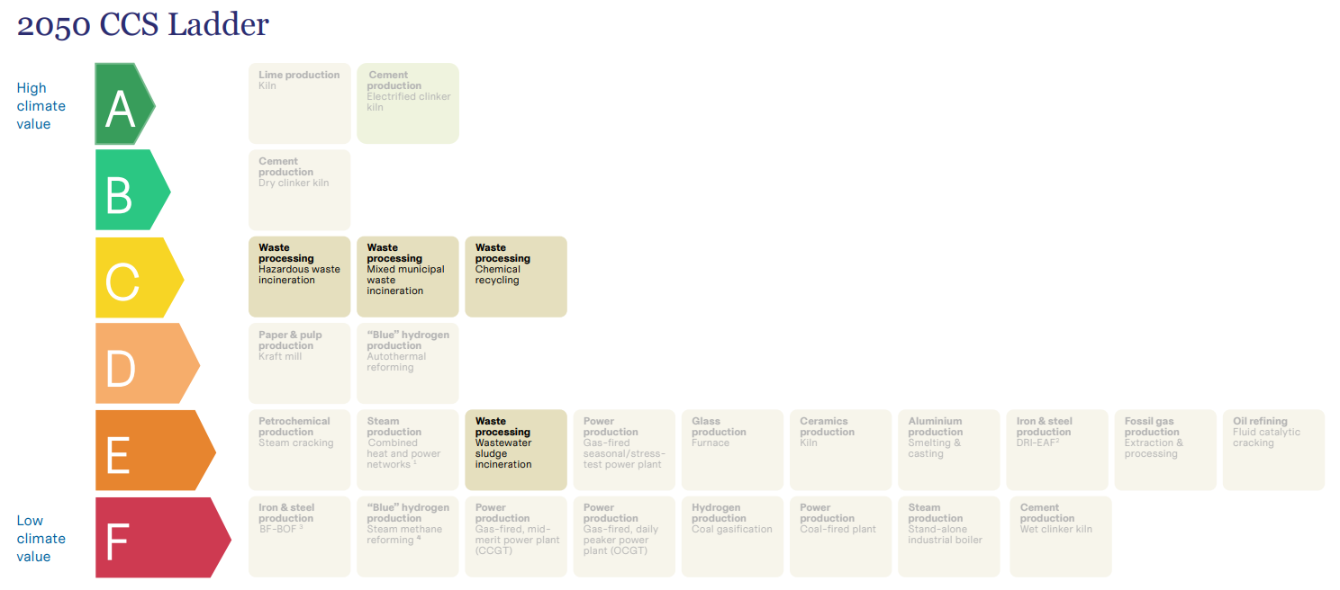 The Ladder assesses CCS applications across key industrial sectors, evaluating their climate value for 2030 and 2050 based on three core criteria: