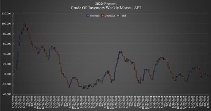 The American Petroleum Institute (API) estimated that crude oil inventories in the United States fell by 3.420 million barrels in the week ending September 12, more than twice as much as analysts had predicted, which was a 1.6 million barrel draw.