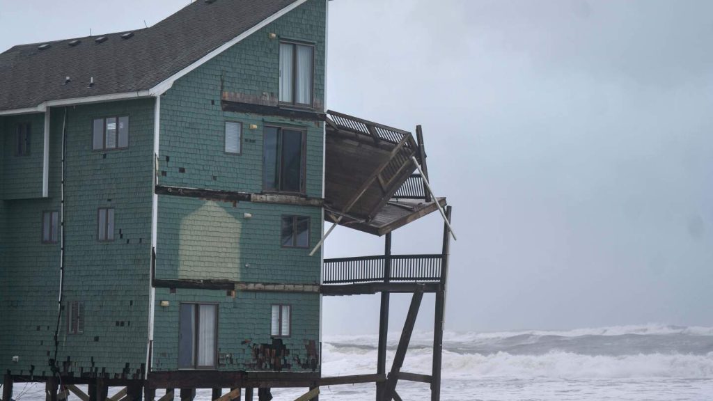 The waves were ferocious at the Hatteras Island town of Buxton, where several beachfront homes have fallen into the water in recent weeks. One house was losing its pilings Sunday and appeared close to collapsing.