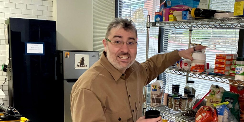 That includes processing big sloppy stuff like watermelons. Even gelatin, which apparently is very hard to turn into dry powder. Matt keeps a jar of gelatin in the corner of the office as a reminder — along with a bunch of other food items that are challenging to recycle.
