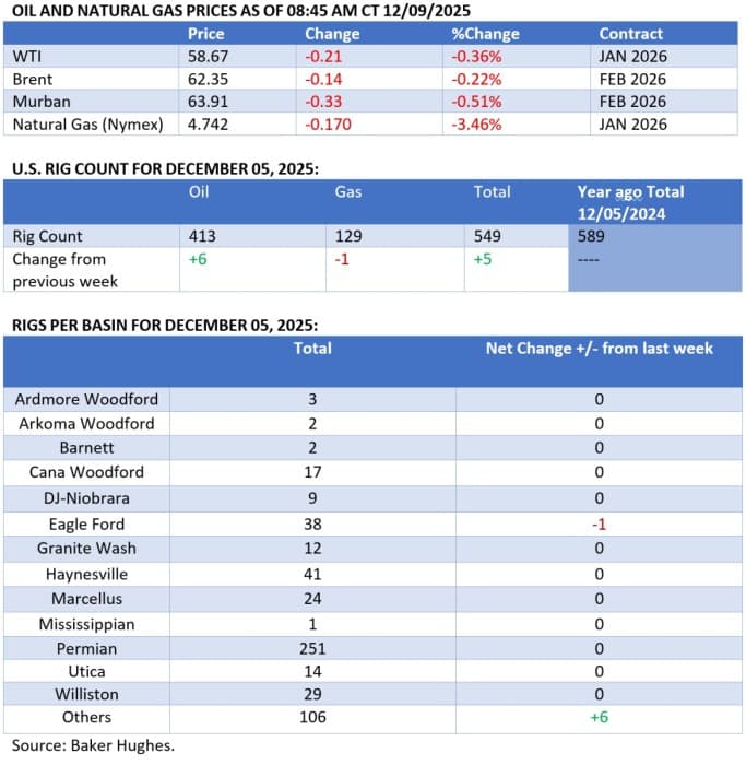 Oil prices continue to search for direction as a supply scare from Iraq turned out to be short-lived, with most market speculation centred around Ukraine peace talks and US Federal Reserve policy. With ICE Brent still hovering around $63 per barrel, the Fed’s last gathering in 2025 could provide some temporary upside to prices, however it is unlikely to fundamentally break the current stalemate.