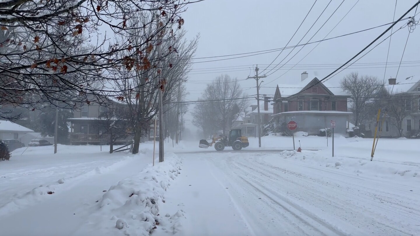 Hundreds of churches in western Michigan told worshippers to stay home or watch services online. Up to 12 inches (about 30 centimeters) of snow has fallen since Saturday in areas close to Lake Michigan.