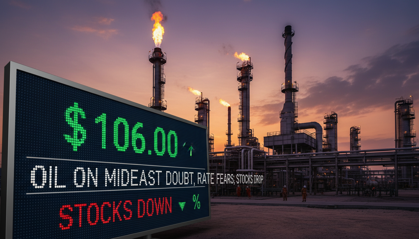 Home » Oil $106 on Mideast Doubt, Rate Fears; Stocks Drop
