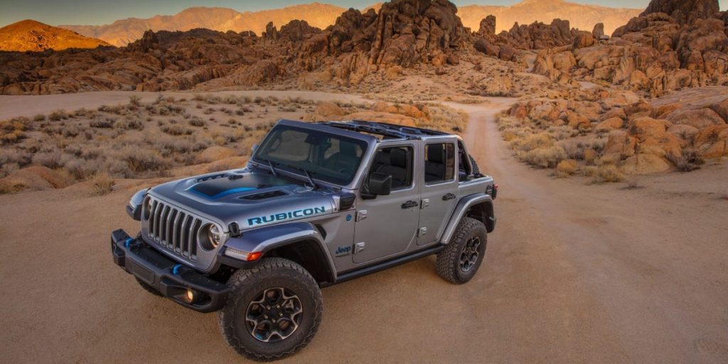 A Jeep Wrangler 4xe plug-in hybrid, which was previously the top-selling plug-in hybrid in America. The company no longer manufactures a plug-in hybrid version of the Wrangler.