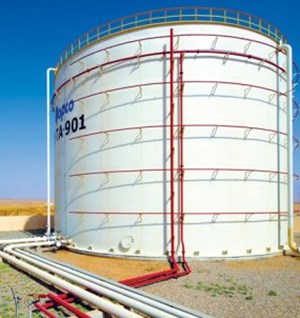 Pictured: an oil storage tank near Taqtaq, Iraq