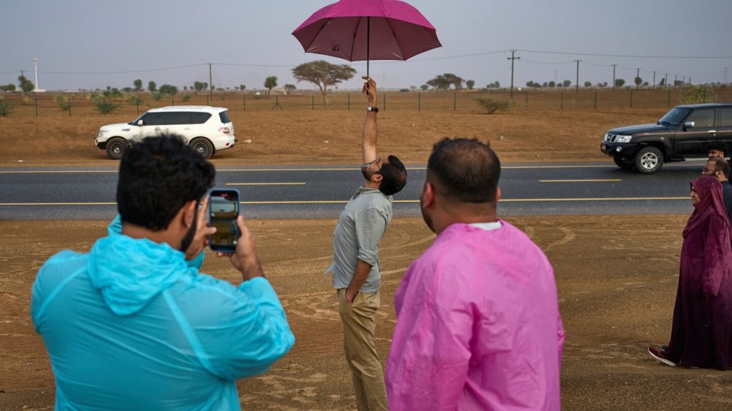 MASAFI, United Arab Emirates (AP) — Outside of a mountain village in the northern outskirts of the United Arab Emirates, clouds on a recent weekend suddenly crowded out the white-hot sun that bakes this desert nation in the summer months. Fierce winds blew over planters and pushed a dumpster down the street. And then came the most infrequent visitor of all: rain.