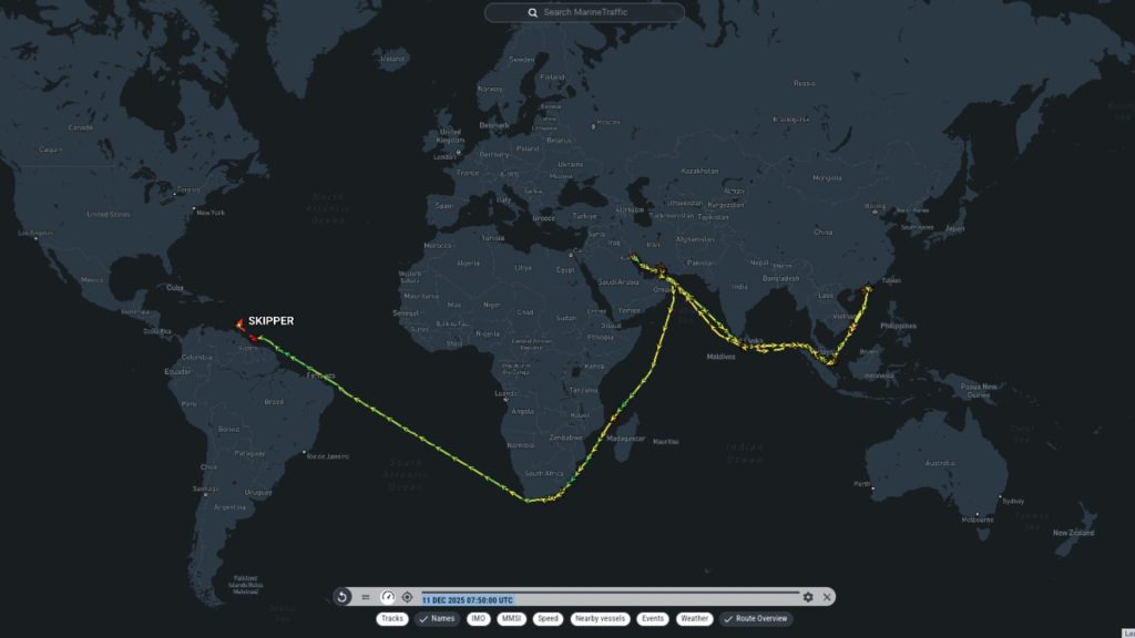 And data suggests that the Guyana-flagged tanker identified as Skipper since 2022 has carried sanctioned oil from Iran and Venezuela.