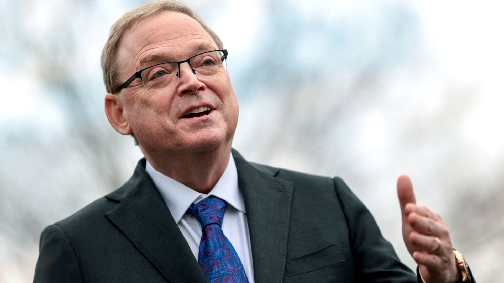 Kevin Hassett, Director of the National Economic Council, speaks to reporters outside the White House in Washington, D.C., U.S., Feb. 25, 2026.