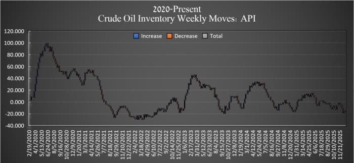 (Oil Price)– The American Petroleum Institute (API) estimated that crude oil inventories in the United States saw a build of 1.7 million barrels in the week ending December 26. Crude oil inventories rose by 2.4 million barrels in the week prior.