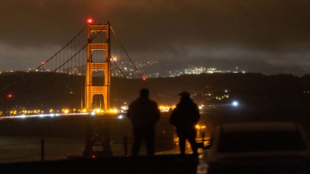 People observe an area affected by a blackout that hit about 130,000 residents, according to the Pacific Gas and Electric Company, in San Francisco on Dec. 21, 2025.